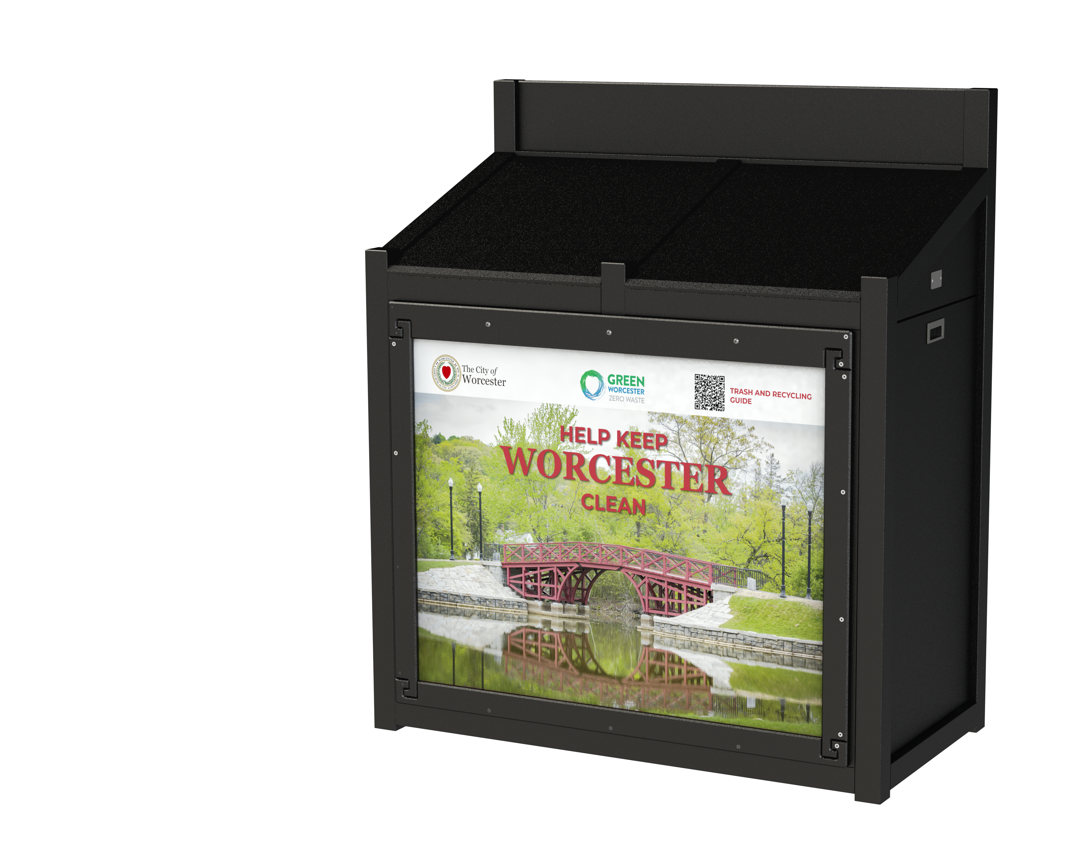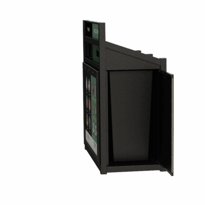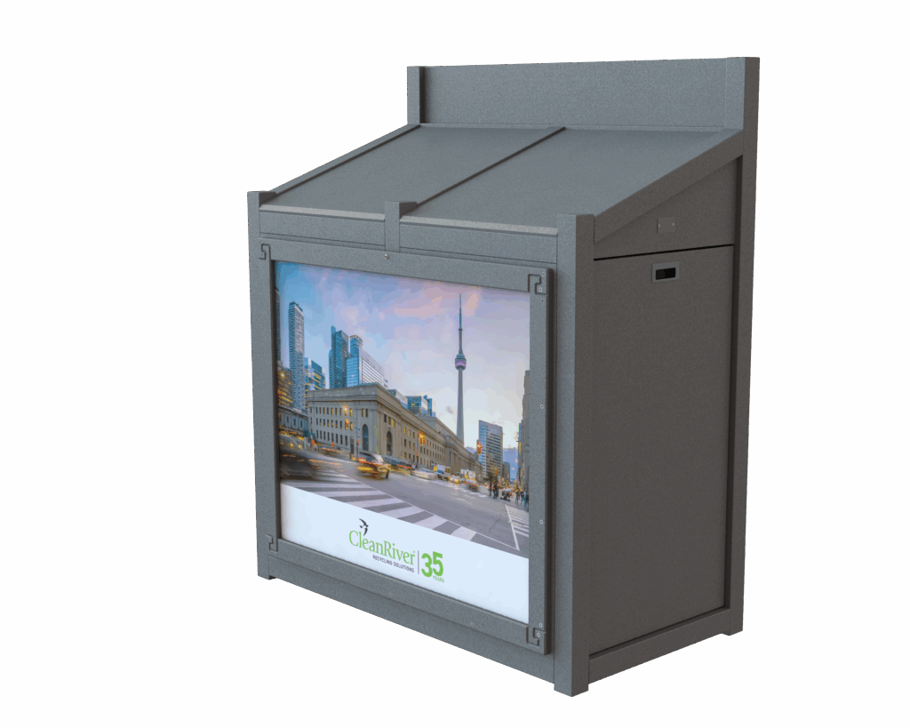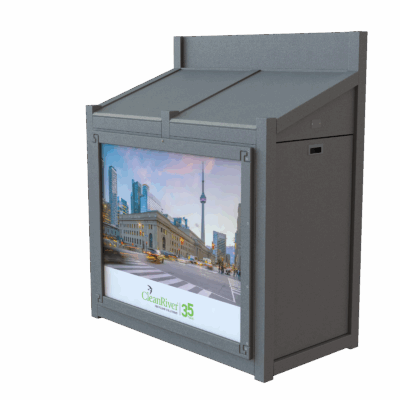 The CityScape bin is engineered for the outdoors, tough enough to thrive in any climate. Two highly visible poster panels with quick-swap capability maximize both visibility and revenue. This dual advantage lets you showcase your sustainability program while generating advertising income. Side-service doors streamline maintenance, making city streets cleaner, safer, and more efficient.